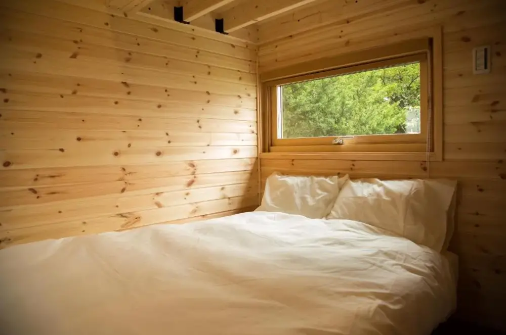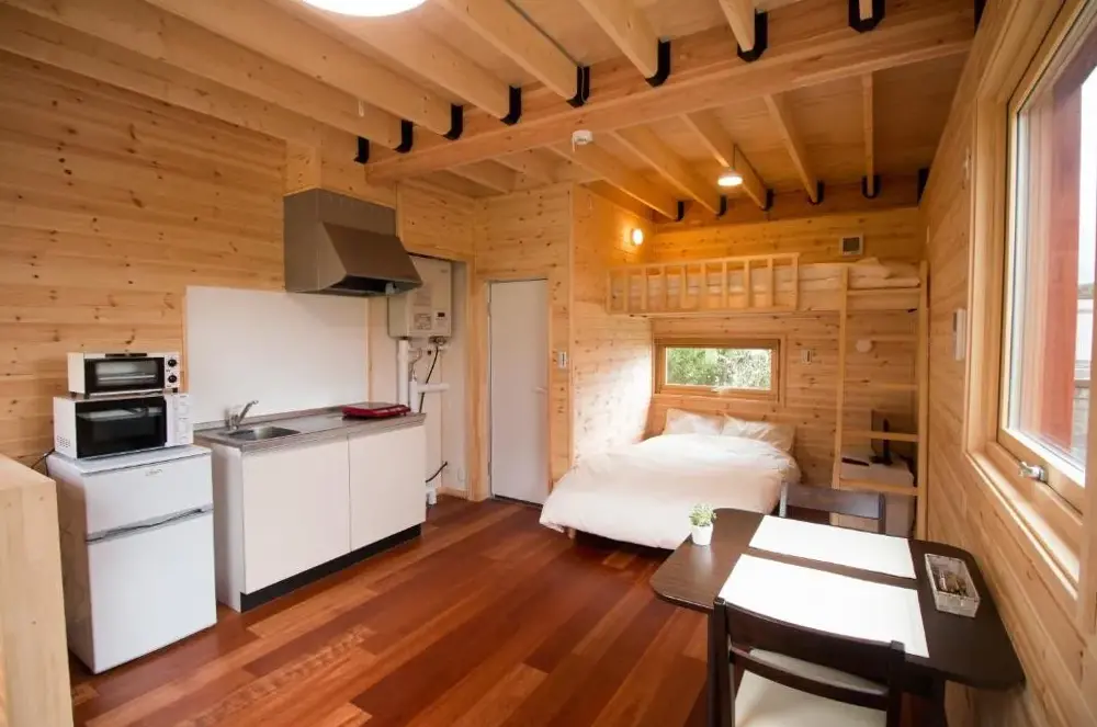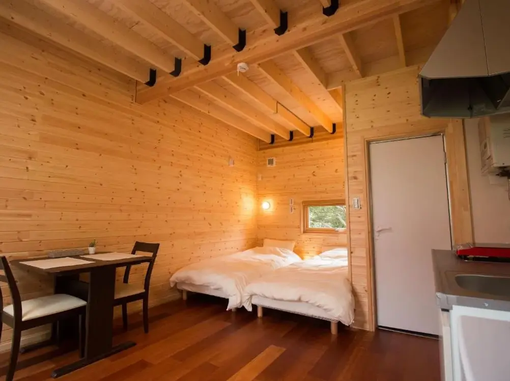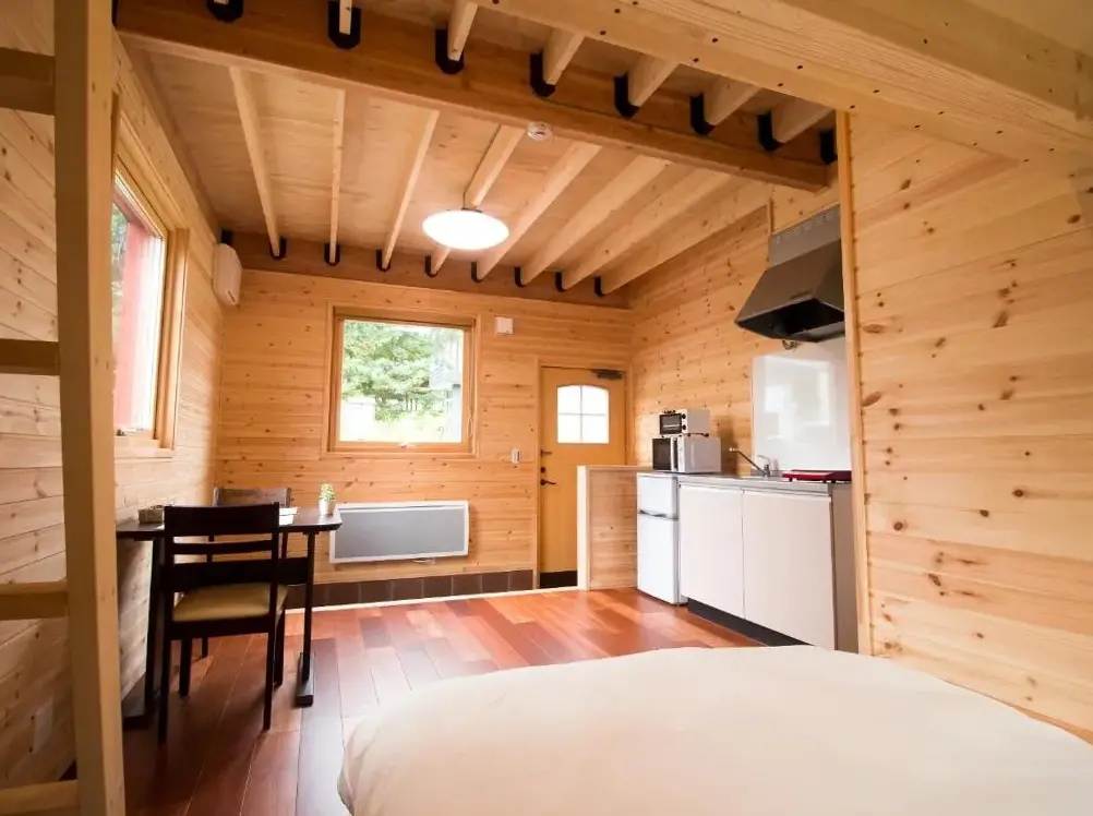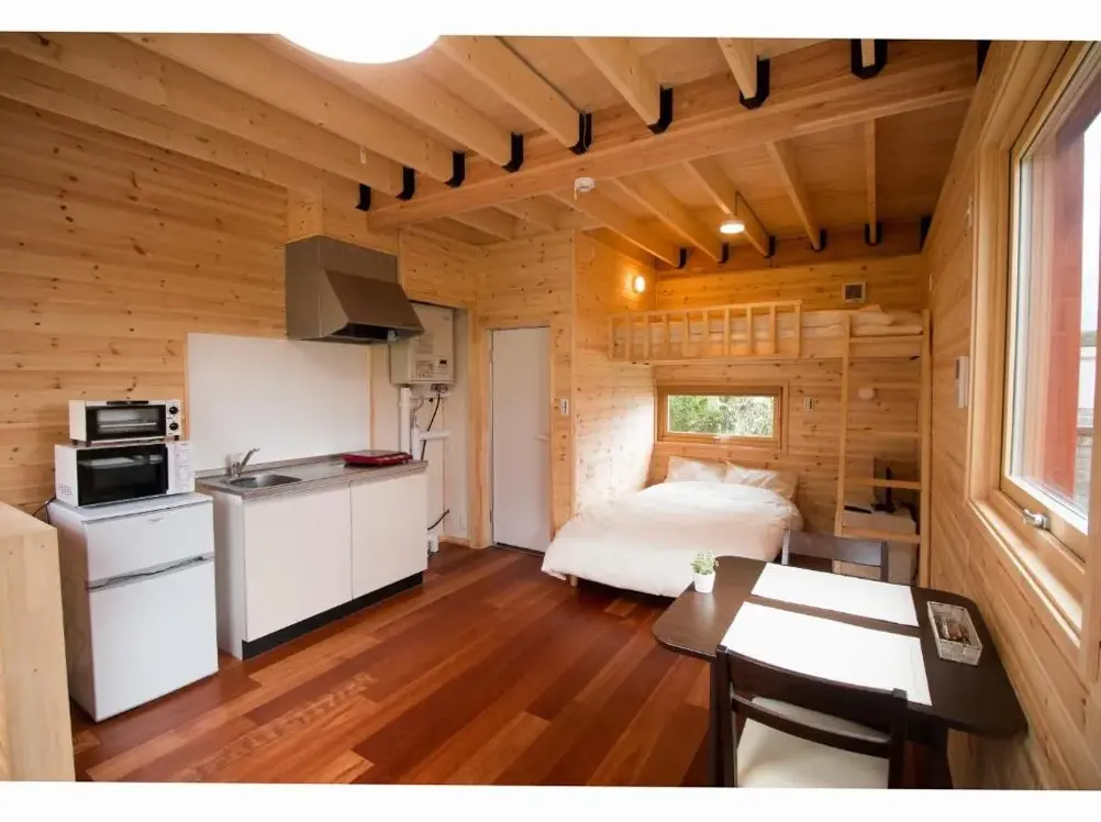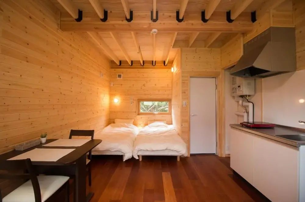 The room is very clean, the wooden building feels very warm, and the outdoor environment is quiet and gives people a very relaxing feeling